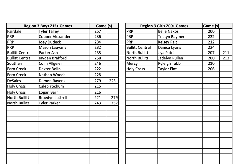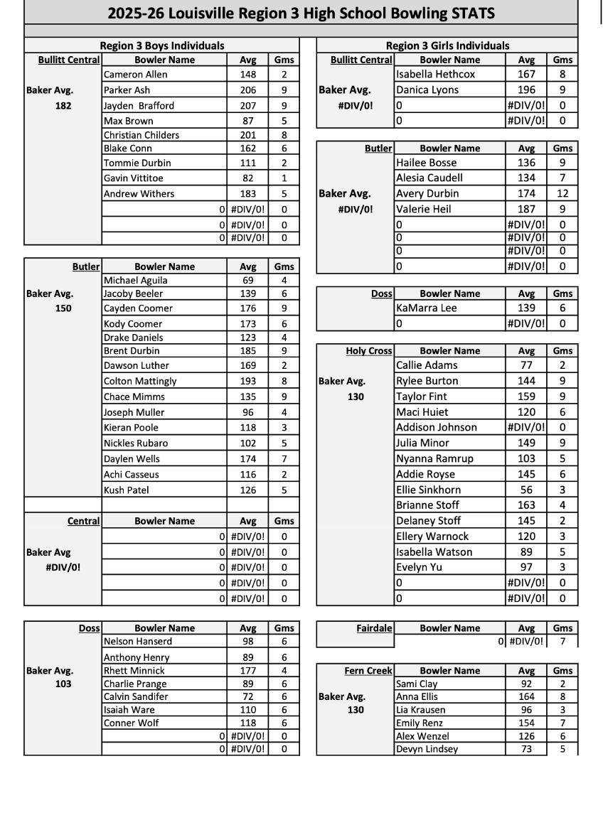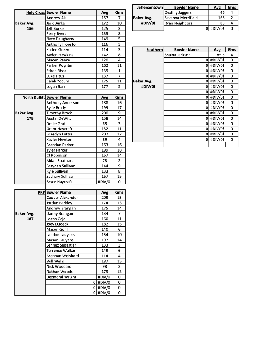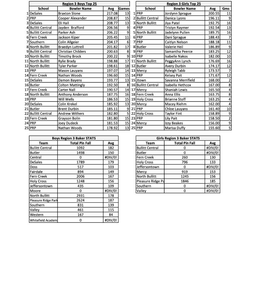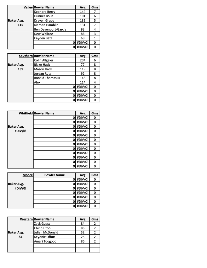 2025-26 high school bowling season stats -will be posted weekly based on score sheets submitted by the coaches.