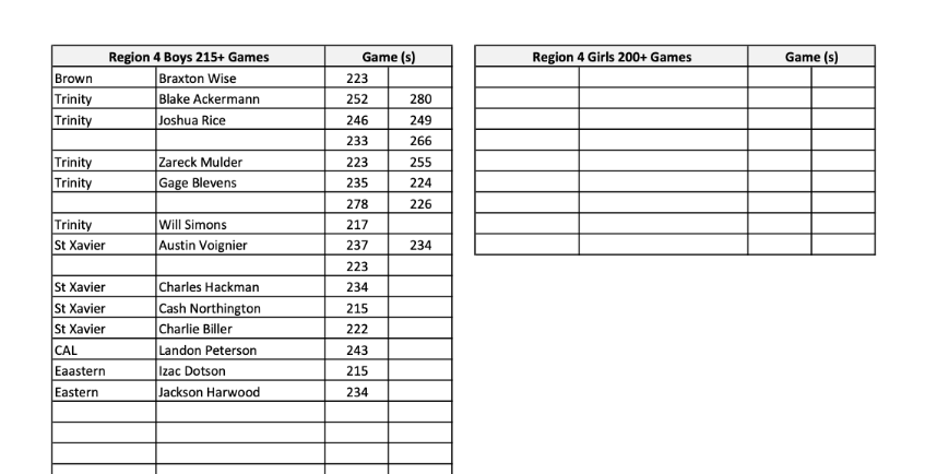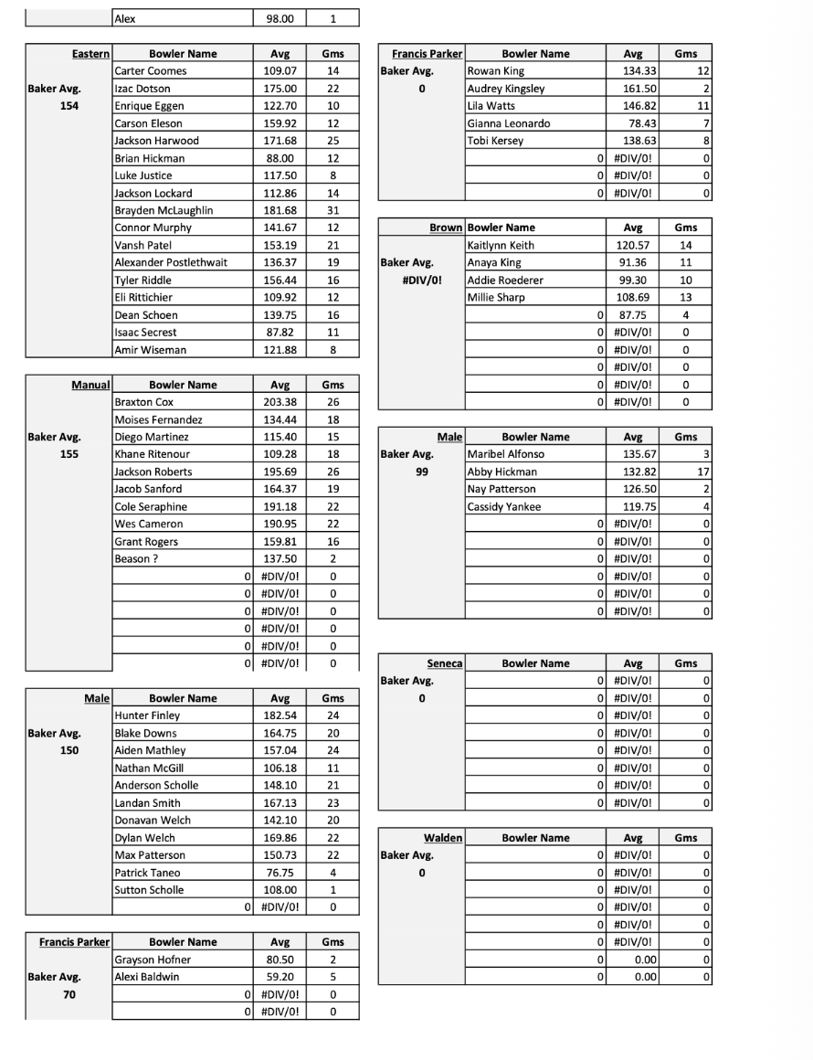 2025-26 high school bowling season stats -will be posted weekly based on score sheets submitted by the coaches.